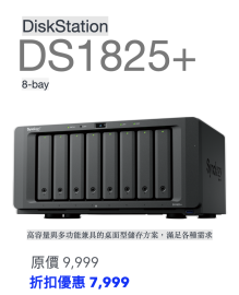 Synology DiskStation DS1825+ 8-Bay NAS 網絡儲存裝置