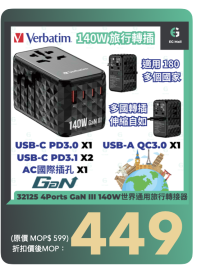 Verbatim GaN III 140W 通用旅行轉插 (UTA-10) 32125