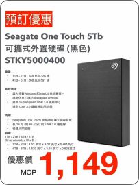 Seagate One Touch 可攜式外置硬碟 -5TB