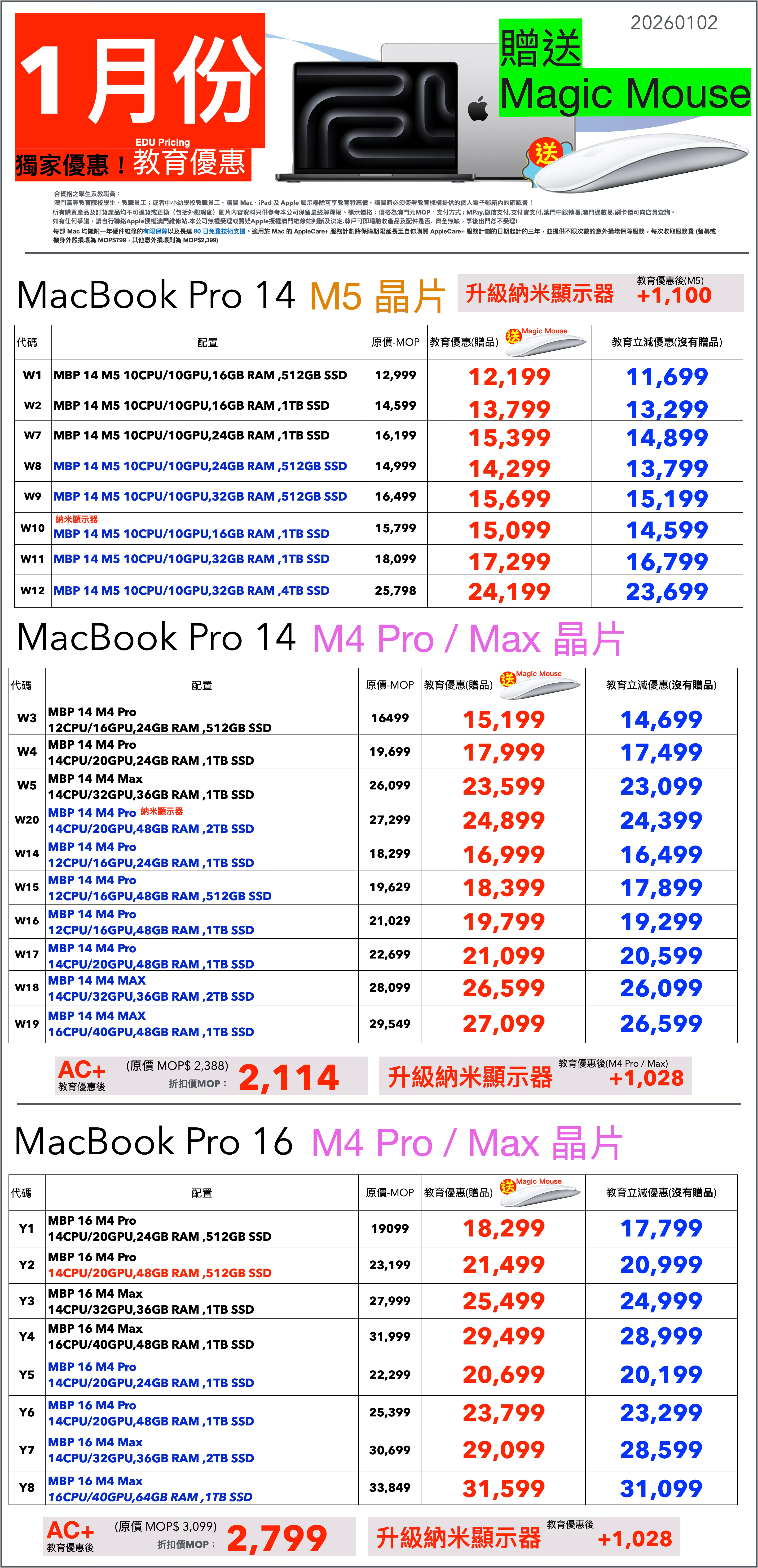 1)限時活動期間,買 指定型號Mac 可享教育優惠,贈送Magic Mouse 1只
