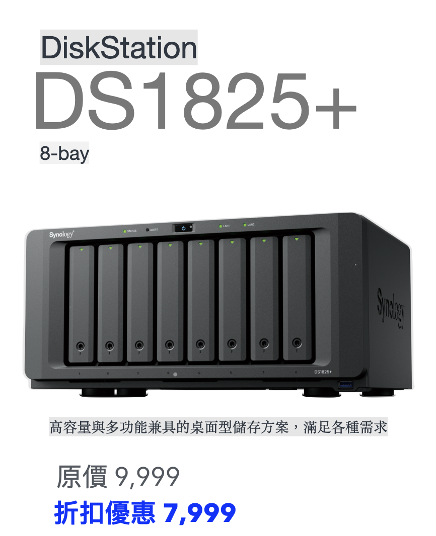 Synology DiskStation DS1825+ 8-Bay NAS 網絡儲存裝置