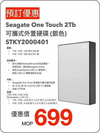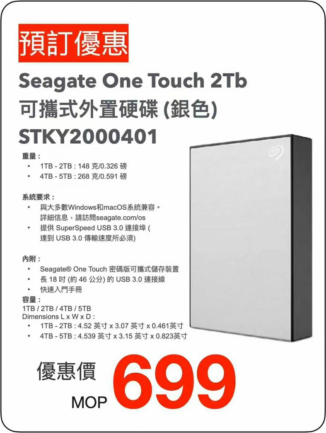 Seagate One Touch 可攜式外置硬碟 -2TB