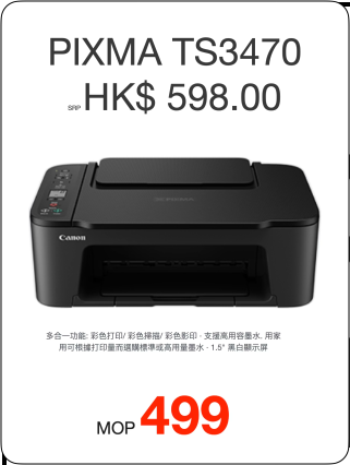 CANON PIXMA TS3470 彩色多功能噴墨打印機