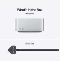· 放在桌面剛剛好:Mac Studio 的 19.70 厘米方形機身小巧簡約,可放置於大部分顯示器之下,完美融入你的桌面。